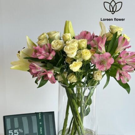 تكون هذه الباقة المميزة من 6 أغصان من الليليوم المتنوع، الذي يتميز بزهوره الرقيقة والأنيقة التي تتراوح بين الأبيض والوردي،