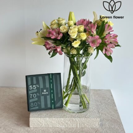 باقة ورد الربيع مع علبة باتشي لطيفة