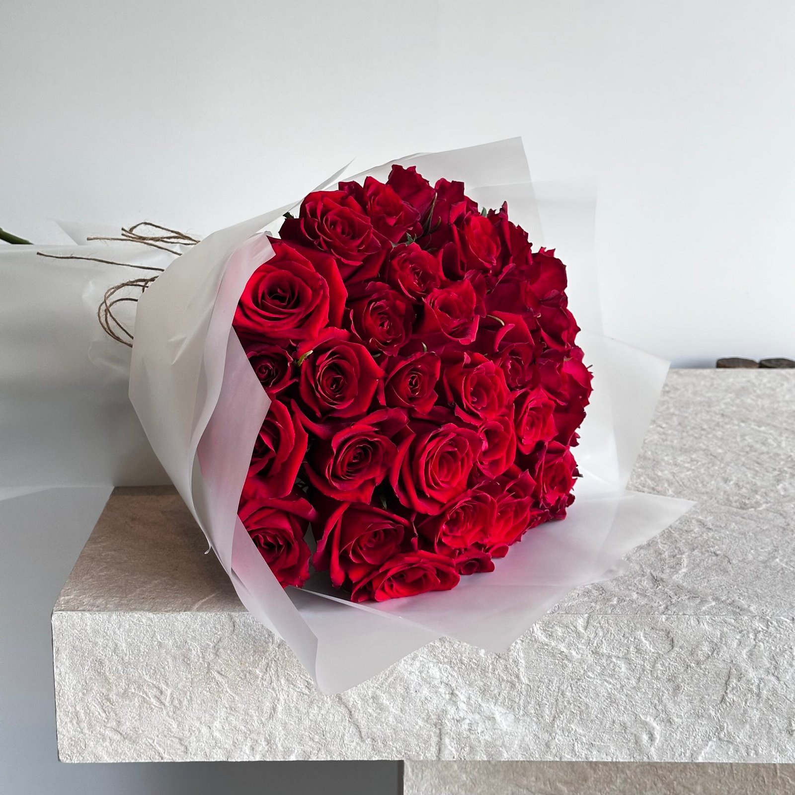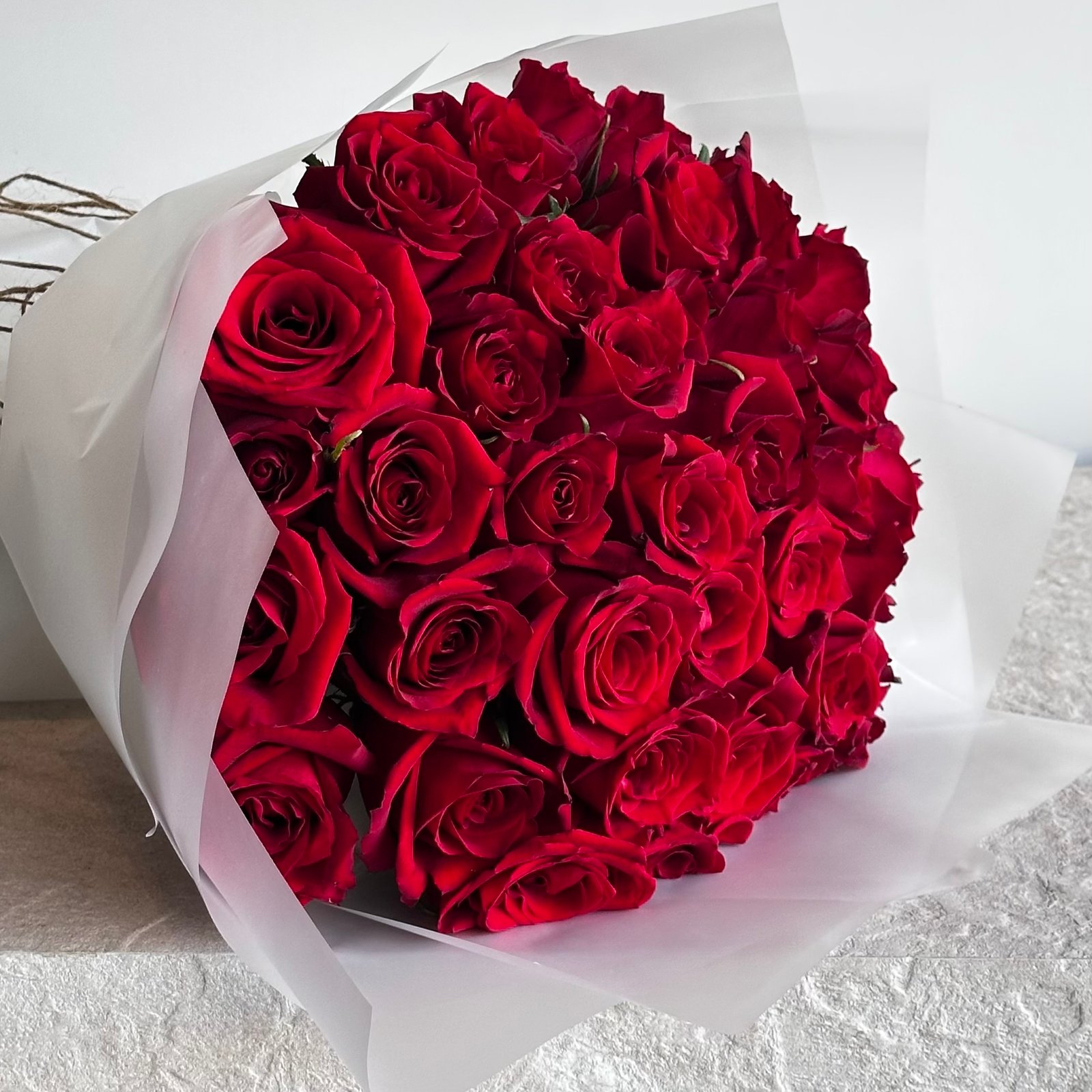 باقة تتكوّن من أربعين وردة حمراء نابضة بالحياة تعبّر عن أسمى مشاعر الحب والرومانسية. هذه باقة ورد حمراء مثالية كباقة ورد للحب، تجمع بين جمال الورد وأناقة الترتيب. تضم باقة ورد أو أزهار الورود المختارة بعناية، حيث تتألّق كل وردة حمراء داخل باقة ورد حمراء بتغليف أبيض ثلجي أنيق يضفي لمسة نقاء وفخام