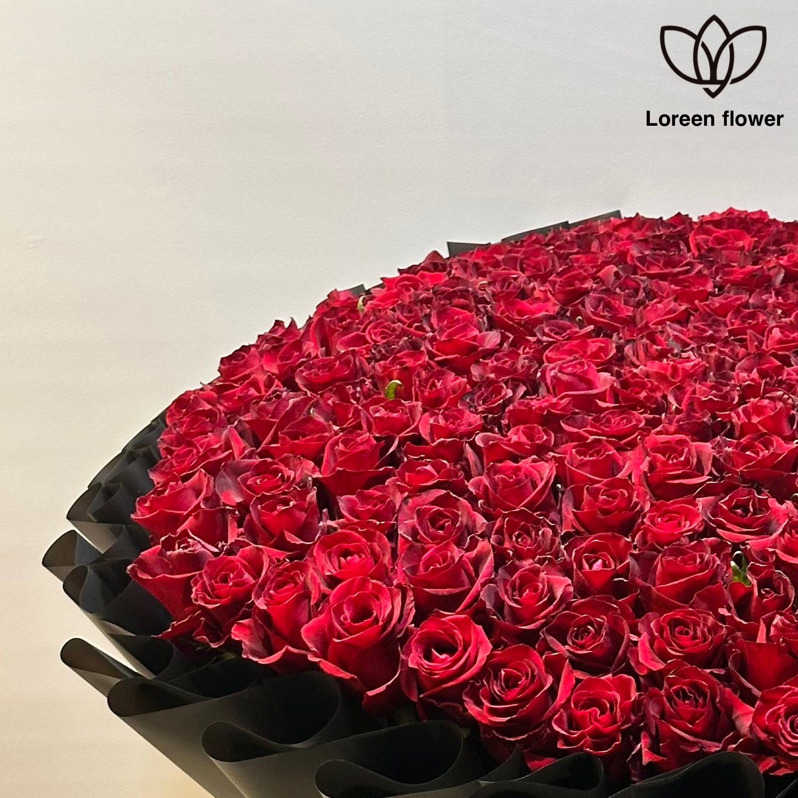 • توازن مثالي بين الجمال والتناسق: الورود الحمراء تبرز بشكل رائع وسط التغليف الأسود.