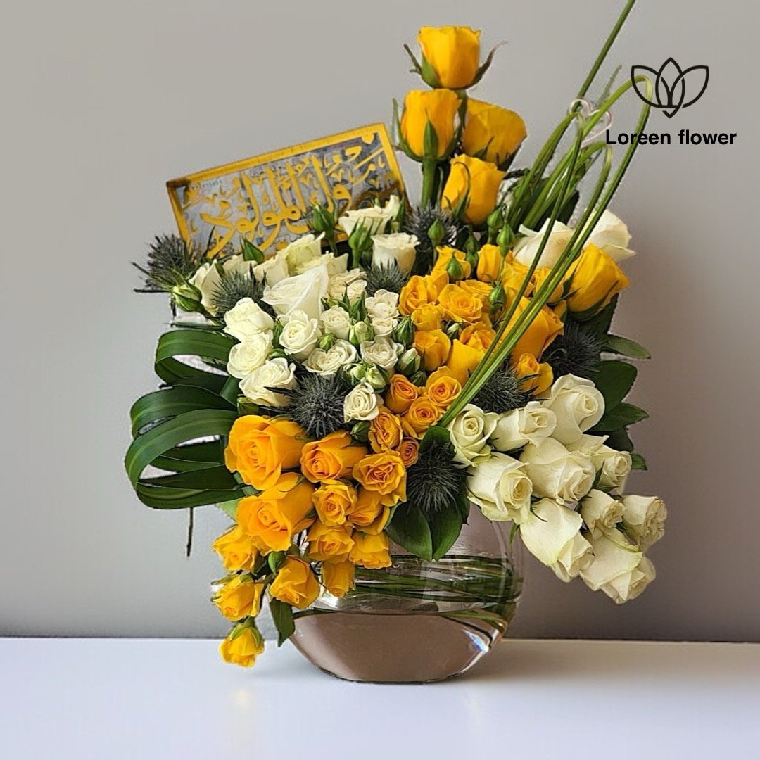 • تنسيق من بيبي روز وجوري أبيض وأصفر.