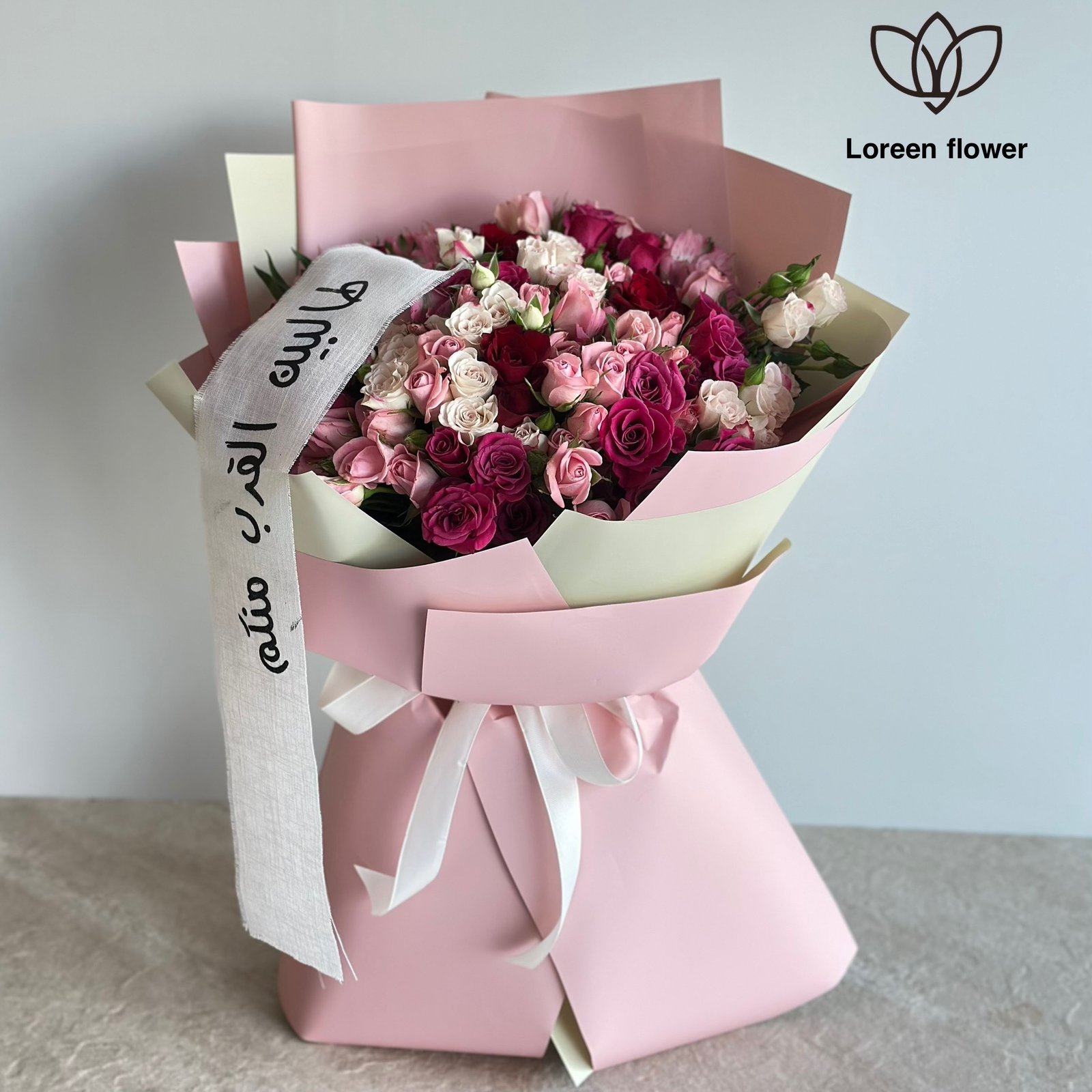 هذه الباقة المميزة تأتي مكونة من 40 غصنًا من بيبي روز المتنوع، بألوانها الجميلة التي تتراوح بين الوردي الفاتح والبنفسجي الرائع، مما يضفي لمسة من الرقي والنعومة. تتميز الباقة بعبارة “طالبين القرب منكم” المكتوبة على الشريط المزين بشكل أنيق، مما يجعلها هدية مثالية للتعبير عن المشاعر الدافئة. تم تغليفها بورق وردي ناعم مع لمسات من الورق الأبيض، مما يعزز من جمال الباقة ويجعلها مثالية للمناسبات الخاصة.