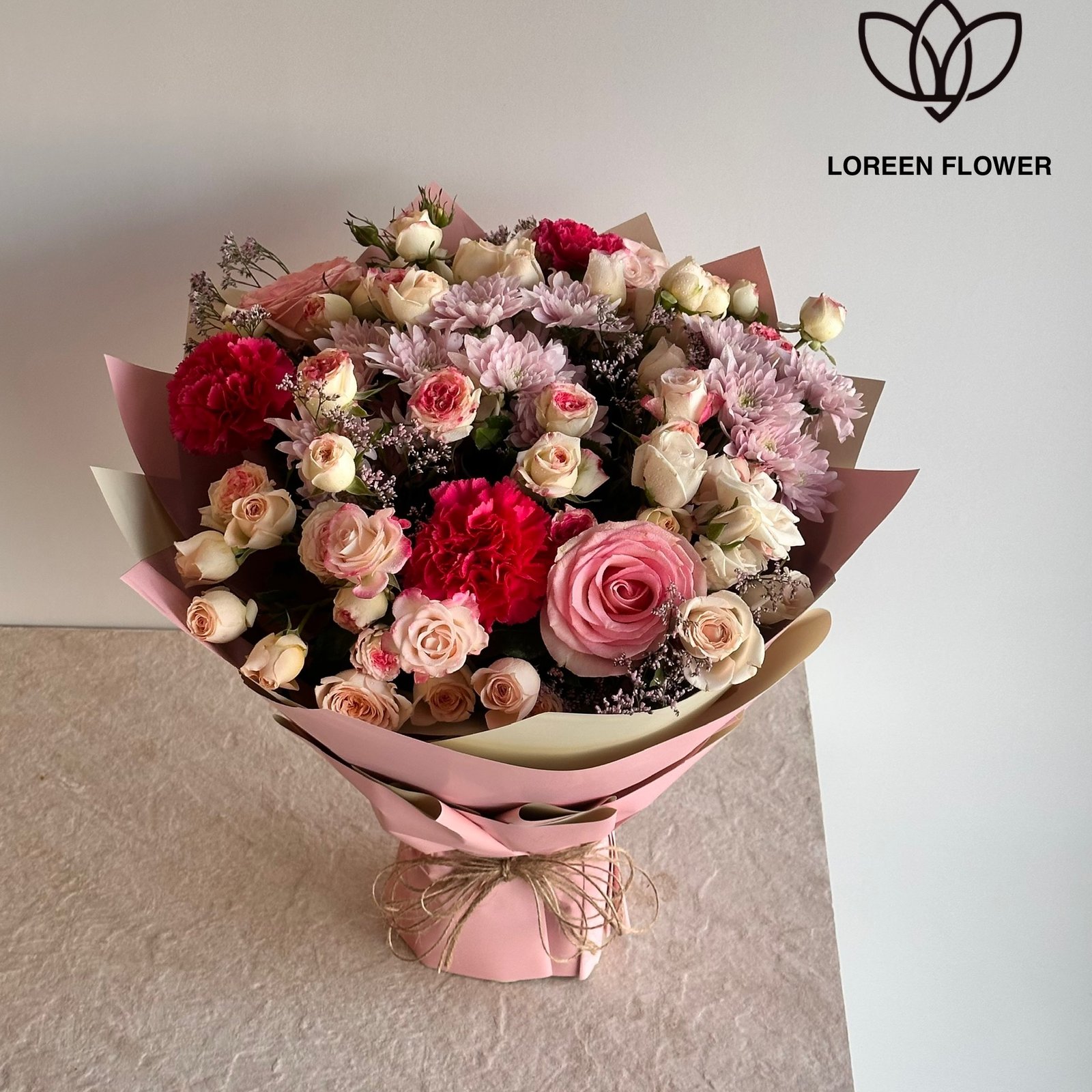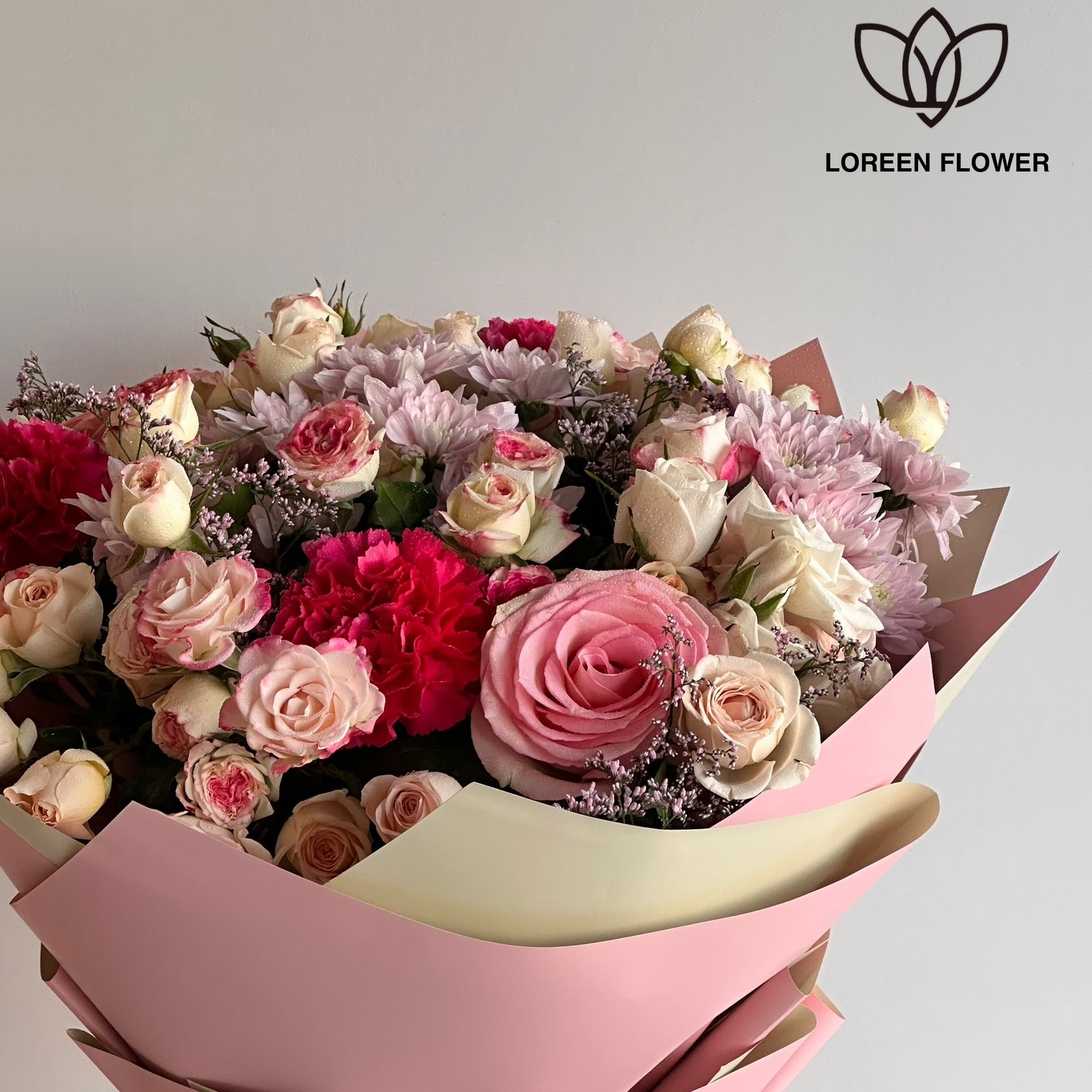 مزيج من الورد الجوري، القرنفل، وأزهار الأسترو وغيرها من الأزهار اللطيفة