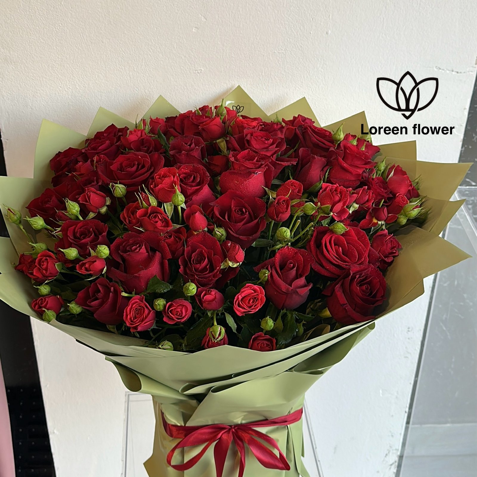 عدد الزهور: 20 وردة حمراء + 40 غصن بيبي روز
