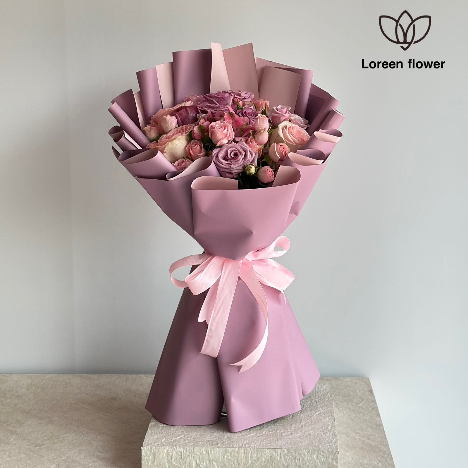 هذه الباقة تعكس الأناقة والهدوء، وهي مثالية لتقديمها في المناسبات الخاصة أو للاحتفال بالمشاعر الرقيقة.