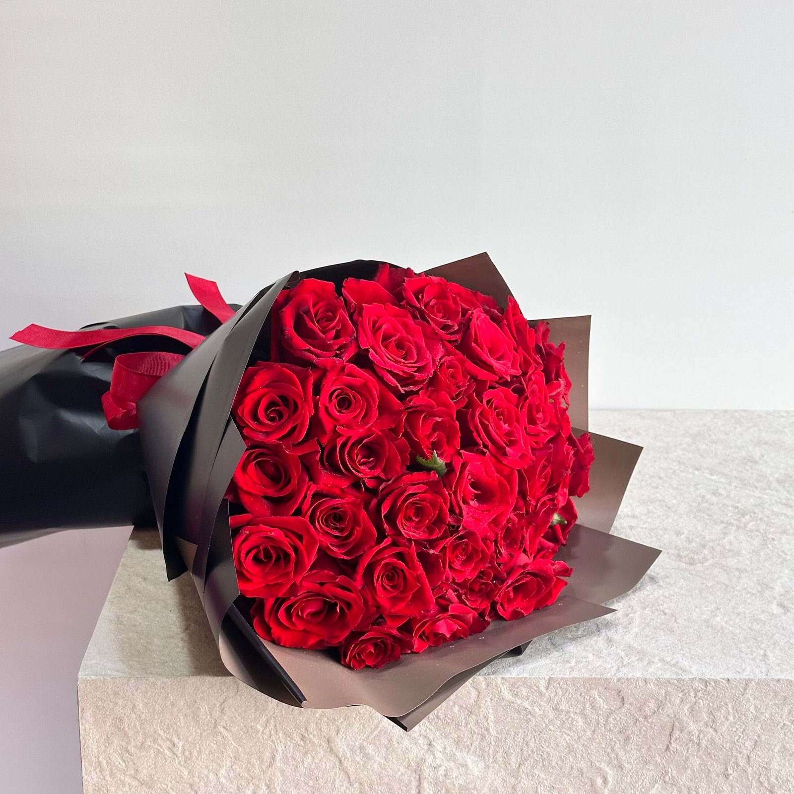 باقة تتكوّن من أربعين وردة حمراء تعبّر عن عمق المشاعر والرومانسية. باقة ورد حمراء مثالية لمن يبحث عن باقة ورد للحب تجمع بين جمال الورد وأناقة التنسيق. تضم باقة ورد أو أزهار الورود المختارة بعناية، حيث تتألّق كل وردة حمراء داخل باقة ورد حمراء بتغليف أسود فاخر يبرز فخامته